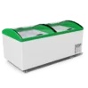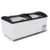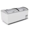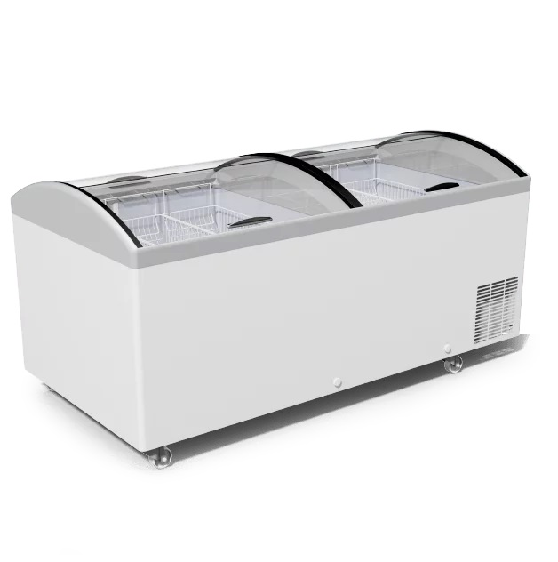 Морозильный ларь-бонета M1000V — эксклюзивная модель бонетного типа. Особенностью данной модели есть два отдельных отделения для единовременного хранения и реализации различных видов замороженной продукции — мяса, рыбы, полуфабрикатов, мороженого, замороженных ягод и овощей и изогнутая на обе стороны форма стекла, обеспечивает доступ покупателям к товару со всех сторон. Тем самым позволяет индивидуально подойти к процессу размещения ее в торговом зале. Подходит для магазинов различных форматов. Большая площадь для брендирования поверхности бонеты делает ее эстетически изысканным и выделяет среди прочего оборудования. Корона оборудования изготовлена из прочного и ударопрочного ABS — пластика с защитным покрытием РММА. Широкая цветовая гамма пластика дает возможность точно подобрать оборудование под стиль Вашей торговой точки. Оборудование энергоэффективное и надежно работает при температуре окружающей среды до +35°C.